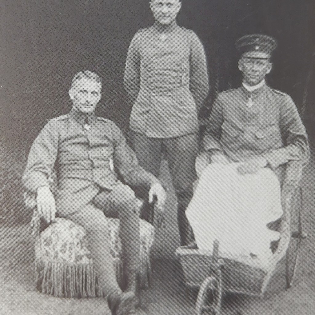 „Mein Bruder Ich war noch nicht acht Tage auf Urlaub, da kriegte ich die telegraphische Nachricht: »Lothar verwundet, nicht lebensgefährlich.« Mehr nicht. Nähere Erkundigungen ergaben, daß er wieder mal recht leichtsinnig gewesen war. Er flog mit Allmenröder zusammen gegen den Feind. Da sah er tief unten, ziemlich weit drüben, einen allein herumkrebsenden Englishman. Das sind so die feindlichen Infanterieflieger, die unseren Truppen besonders lästig fallen. Jedenfalls beunruhigen sie sehr. Ob sie wirklich etwas erreichen mit ihrem tiefen Rumkrebsen, ist sehr die Frage. Mein Bruder war etwa zweitausend Meter hoch, der Engländer tausend. Er pürscht sich ’ran, setzt zum Sturzflug an und ist in wenigen Sekunden bei ihm. Der Engländer zog es vor, den Kampf zu vermeiden, und verschwand gleichfalls im Sturzflug in der Tiefe. Mein Bruder, nicht faul, hinterher. Ganz schnuppe, ob es drüben oder bei uns ist. Nur ein Gedanke: er muß ’runter. Das ist ja auch natürlich das richtige. Ab und zu mache ich’s auch. Aber wenn es mein Bruder bei jedem Fluge nicht mindestens einmal gemacht hat, macht ihm das ganze Unternehmen keinen Spaß. Erst ganz kurz über dem Boden kriegt er ihn wirklich gut vor und kann [164]ihm den Laden vollschießen. Der Engländer stürzt senkrecht in die Erde. Viel bleibt nicht mehr übrig. Nach so einem Kampfe, besonders in geringer Höhe, in dem man sich so oft gedreht und gewendet hat, mal rechtsrum und mal linksrum geflogen ist, hat der normale Sterbliche keine Ahnung mehr, wo er sich befindet. Nun war es an diesem Tage noch etwas dunstig, also ein besonders ungünstiges Wetter. Schnell hatte er sich orientiert und merkt erst jetzt, daß er doch wohl ein ganzes Ende hinter der Front ist. Er war hinter der Vimy-Höhe. Die Vimy-Höhen sind etwa hundert Meter höher als die andere Gegend. Mein Bruder war hinter diesen Vimy-Höhen verschwunden – behaupten jedenfalls die Beobachter von der Erde aus. Dieses Nachhausefliegen, bis man seine eigene Stellung erreicht hat, gehört nicht zu den angenehmsten Gefühlen, die man sich denken kann. Man kann nichts dagegen tun, daß einen der Gegner beschießt. Nur selten treffen sie. Mein Bruder näherte sich der Linie. In so geringer Höhe kann man jeden Schuß hören, es hört sich an, wie wenn Kastanien im Feuer platzen, wenn der einzelne Infanterist schießt. Da – mit einem Male fühlte er einen Schlag, getroffen. Das war ihm klar. Er zählt zu den Menschen, die nicht ihr eignes Blut sehen können. Bei einem anderen [165]macht es ihm keinen Eindruck; wenigstens weniger. Aber sein eigenes Blut stört ihn. Er fühlt, wie es ihm warm am rechten Bein herunterläuft, zur gleichen Zeit auch einen Schmerz in der Hüfte. Unten wird noch immer geknallt. Also ist er noch drüben. Da endlich hört es so sachte auf, und er ist über unsere Front hinüber. Nun muß er sich aber beeilen, denn seine Kräfte lassen zusehends nach. Da sieht er einen Wald, daneben eine Wiese. Also auf die Wiese zu. Die Zündung schnell herausgenommen, der Motor bleibt stehen, und in demselben Augenblick ist es alle mit seinen Kräften, die Besinnung hat ihn verlassen. Er sitzt ja nun ganz allein in seinem Flugzeug, also ein zweiter konnte ihm nicht helfen. Wie er auf die Erde hinuntergekommen ist, ist eigentlich ein Wunder. Denn von allein startet und landet kein Flugzeug. Man behauptet dies nur von einer alten Taube in Köln, die von einem Monteur zum Start zurechtgemacht ist und gerade in dem Augenblick, wie der Pilot sich hineinsetzen will, von allein losfliegt, von allein eine Kurve macht und nach fünf Minuten wieder landet. Das wollen viele Männer gesehen haben. Ich habe es nicht gesehen – aber ich bin doch fest davon überzeugt, daß es wahr ist. Mein Bruder jedenfalls hatte nicht so eine Taube, die von allein landet, aber trotzdem hatte er sich bei dem Berühren mit dem Erdboden nichts getan. Erst im [166]Lazarett fand er die Besinnung wieder. Er wurde nach Douai transportiert. Es ist für einen Bruder ein ganz eigenartiges Gefühl, wenn man den anderen in einen Kampf mit einem Engländer verwickelt sieht. So sah ich zum Beispiel einmal, wie Lothar hinter dem Geschwader etwas herhängt und von einem Engländer attackiert wird. Es wäre für ihn ein leichtes gewesen, den Kampf zu verweigern. Er braucht bloß in der Tiefe zu verschwinden. Aber nein, das tut er nicht! Der Gedanke kommt ihm scheinbar gar nicht. Ausreißen kennt er nicht. Zum Glück hatte ich dies beobachtet und paßte auf. Da sah ich, wie der Engländer, der über ihm war, immer auf ihn ’runterstößt und schießt. Mein Bruder versucht, seine Höhe zu erreichen, unbekümmert, ob er beschossen wird oder nicht. Da – mit einem Male überschlägt sich das Flugzeug, und die rot angestrichene Maschine stürzt senkrecht, sich um sich selbst drehend, herunter. Keine gewollte Bewegung, sondern ein regelrechter Absturz. Dieses ist für den zusehenden Bruder nicht das schönste aller Gefühle. Aber ich habe mich so sachte daran gewöhnen müssen, denn mein Bruder benutzte es als Trick. Wie er erkannt hatte, daß der Engländer ihm über war, markierte er ein Angeschossensein. Der Engländer hinterher, mein Bruder fängt sich und hat ihn im Umsehen überstiegen. Das feindliche Flugzeug konnte sich nicht so schnell [167]wieder aufrichten und zur Besinnung kommen, da saß ihm mein Bruder im Nacken, und einige Augenblicke später schlugen die Flammen heraus. Dann ist nichts mehr zu retten, dann stürzt das Flugzeug brennend ab. Ich habe mal auf der Erde neben einem Benzintank gestanden, wo hundert Liter auf einmal explodierten und verbrannten. Ich konnte nicht zehn Schritt daneben stehen, so heiß wurde mir. Und nun muß man sich vorstellen, daß auf wenige Zentimeter vor einem so ein Tank von vielen fünfzig Litern explodiert und der Propellerwind die ganze Glut einem ins Gesicht treibt. Ich glaube, man ist im ersten Moment schon besinnungslos, und es geht jedenfalls am schnellsten. A