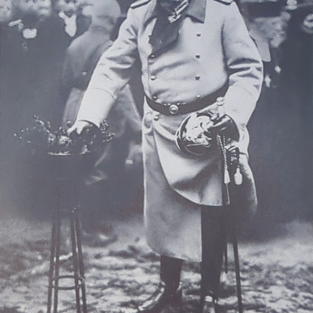 „Im Laufe des Jahres 1926 wurde von verschiedenen Seiten Unmut über den ungepflegten Zustand des lediglich durch das 1918 enstandene Holzkreuz (mit der Inschrift ‚Richthofen, von Baron, Capitaine‘) kenntlichen und ansonsten ungeschmückten Grabes an das Reichswehrministerium herangetragen. Es kam daher unter Beteiligung privater Mittel und maßgeblicher Teilnahme der Vereinigung ‚Ring der Flieger e.V.‘ zur Errichtung eines Decksteines auf dem Grab mit einer Feier zur Grabmalseinweihung am 28/ Oktober 1926.“