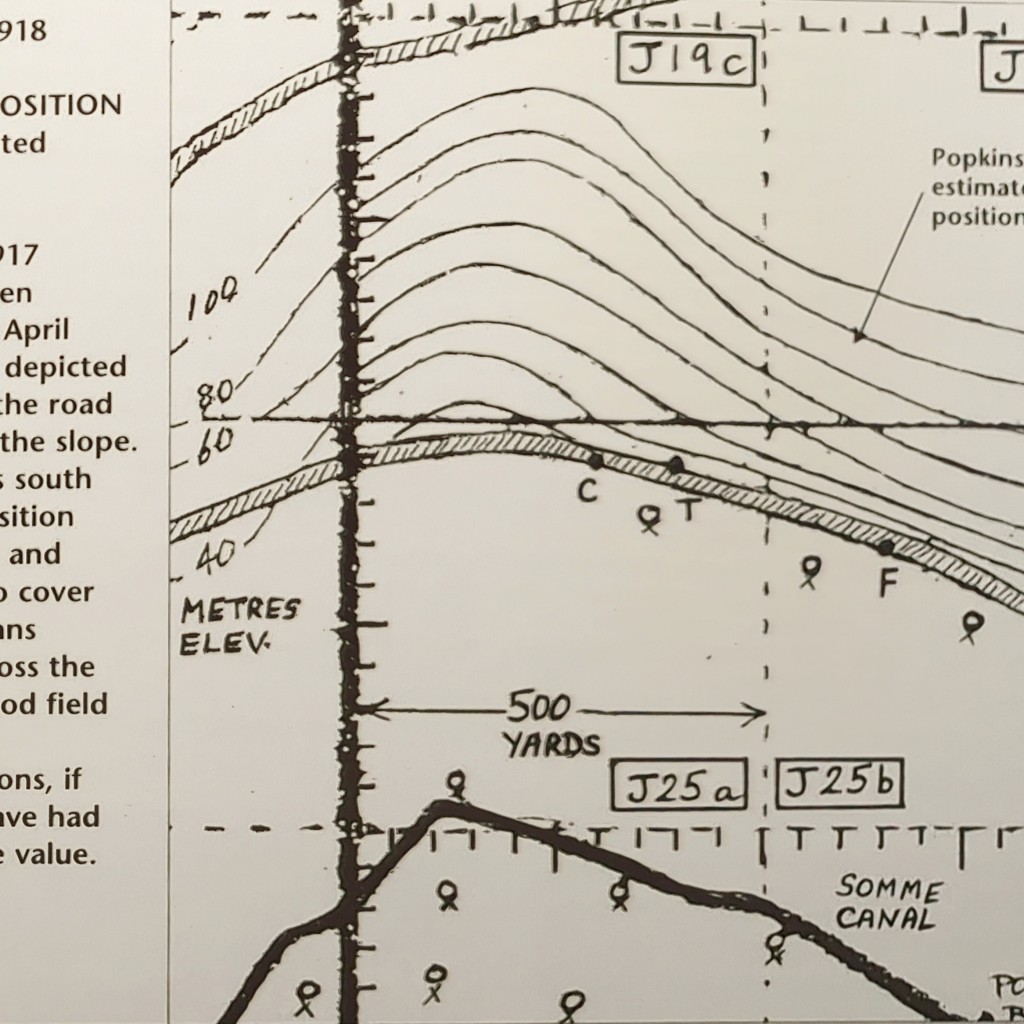 Die Verwirrung über die genaue Position des Vickers-Maschinengewehrs des Gefreiten Rupert Weston, als Sergeant Popkin das Kommando übernahm und auf den roten Dreidecker schoss, könnte wiederum auf die gleichzeitige Verwendung von Karten verschiedener Jahrgänge zurückzuführen sein. Popkin gab in seinem Bericht an, dass er sich irgendwo in J.19.d. befand. Auf der Karte vom April 1918 würde ihn dieser Standort mindestens 100 Meter weiter südlich (tiefer am Hang) platzieren, als nötig war, um das richtige Schussfeld zu haben. Auf einer Karte vom August 1917 befindet sich J.19.d nur 100 Meter nördlich, was das gewünschte Schussfeld bietet.