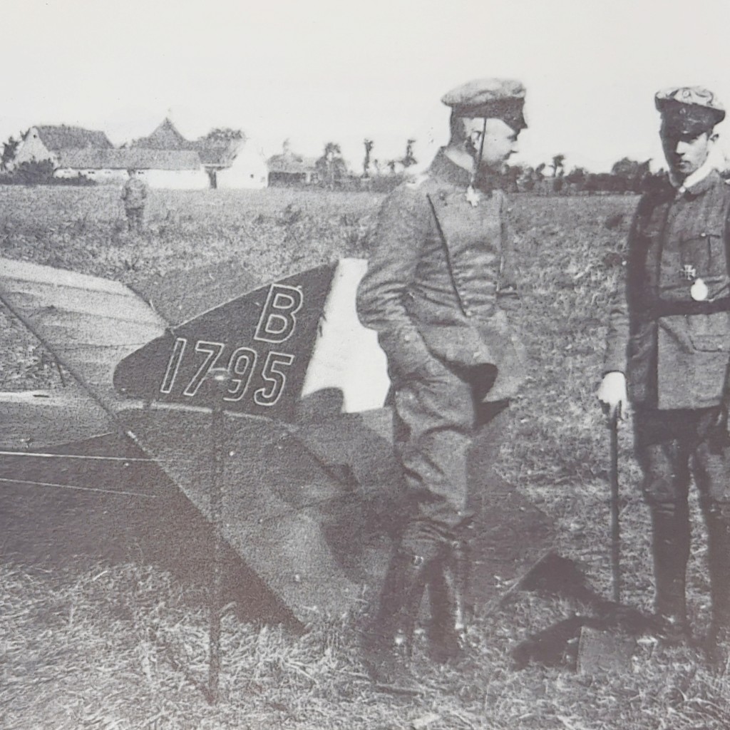 „Mit 5 Flugzeugen der Staffel 11 in einen Geschwaderkampf mit Sopwith-Einsitzern verwickelt, griff ich in 3500 m Höhe einen der Gegner an und zwang ihn nach ziemlich langem Kurvenkampf bei Bousbeque zur Landung. Ich hatte unbedingt die Überzeugung, einen sehr gewandten Flieger vor mir zu haben, der sich auch in 50 m Höhe noch nicht ergab, wieder schoß, undnoch beim Ausschweben eine Kolonne unter Feuer nahm, dann absichtlich seine Machine gegen einen Baum rollte. Der Fokker-Dreidecker F I. 102/17 war dem englischen Sopwith unbedingt überlegen.““