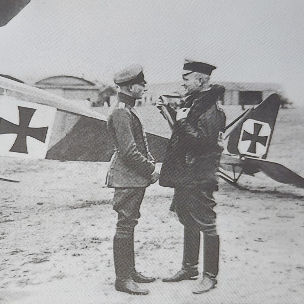 “Letter from Hartha Gerstenberg, wife of Alfred Gerstenberg to Albert Flipts: In 1912, he joined the 1st Uhlanenregiment at Militsch in Silesia. It was with this regiment that he was asked to fly with Manfred von Richthofen. During 1915-1916, he flew with the Red Baron as his observer. In June 1916, he was with von Richthofen at Fliegerabteilung 69 in Russia…In January 1918, he accompanied Manfred von Richthofen to Imperial Headquarters and von Richthofen handed him his ‘will’ saying: ‘In case I do not return, Hauptmann Reinhard will take over the command of Jagdgeschwader 1’…After von Richthofen’s death, he took care of his dog “Moritz”, who died at his farm in old age.”
