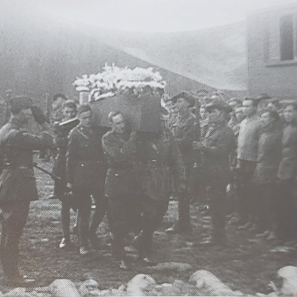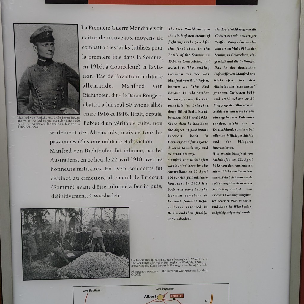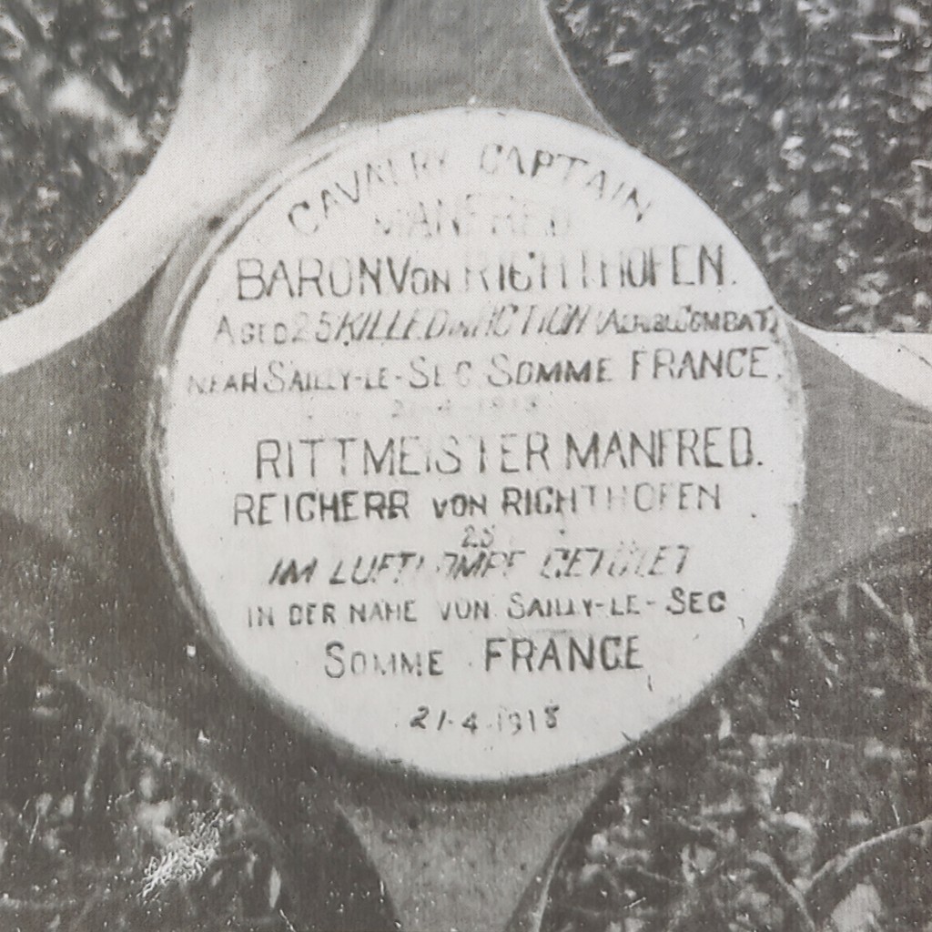 ‘Two days after his death, Manfred Freiherr von Richthofen is buried with full military honours (his coffin is carried by Australian officers of the same rank) in the municipal cemetery in Bertangles.’