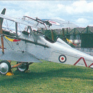 believed to have been thus nicknamed for the fact that its cabane struts appeared to be interplane struts cut in half, the 1 1/2 Strutter was the first British aeroplane fitted with an interrupted gun, complemented by a trainable gun in the rear cockpit. First flown in December 1915 with an 82 kW (110 hp) Clerget rotary, the type resulted from a naval requirement and showed such capability that large-scale production was undertaken with the naval and army designations Admiralty Type 9700 and Two-seater respectively. The type was produced in two- and single-seat forms, the latter being a bomber operated almost exclusively by the navy. Deliveries began in spring 1916, and total British production of 1513 1 1/2 Strutters was complemented by about 4500 French-built aircraft. Replacement with more agile fighters of higher performance began in July 1917. (source: The International Encyclopedia of Aircraft, Oriole Publishing, 1991)