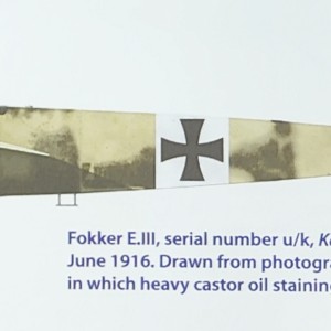 When it appeared in the late summer of 1915, the Fokker E.I was the world’s first true fighter, for despite its poor performance and indifferent monoplane structure (derived from its M.5k unarmed predecessor) it was armed with a machine-gun enabled to fire directly forward through the propeller disc by the world’s first practical interrupter gear. The E.I (few built) was underpowered, and succeeded by the E.II with greater power (23 built) and then by the definitive E.III (between 120 and 150 built) with the same engine but a number of detail improvements. This was the aircraft of the 1915/16 ‘Fokker Scourge’ in which these poor aircraft prevailed because of their armament and the skill of their pilots. Allied developments prompted the E.IV with two guns and greater power, but this lacked any real agility. (source: The International Encyclopedia of Aircraft, Oriole Publishing, 1991)